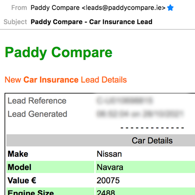 Interested in receiving Irish insurance leads? At Paddy Compare we aim to provide you with high quality introductions to new business via our website, www.PaddyCompare.ie.